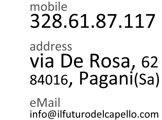 telefono: 3286187117, indirizzo: via De Rosa 64, 84016 Pagani (Salerno), email: info@ilfuturodelcapello.com